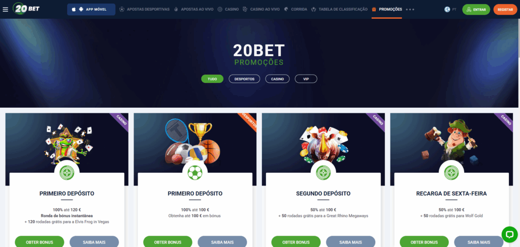 A 20Bet é uma marca internacional que se destacou pelo marketing agressivo, pela oferta de jogos e pelo design moderno. No entanto, não é uma casa legal em Portugal. O facto de ter um site em português não significa que cumpra as normas nacionais.